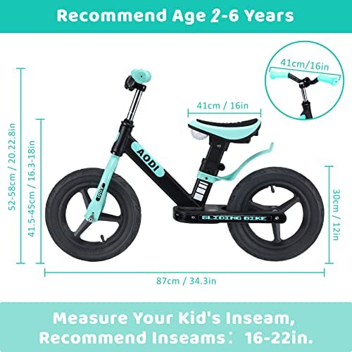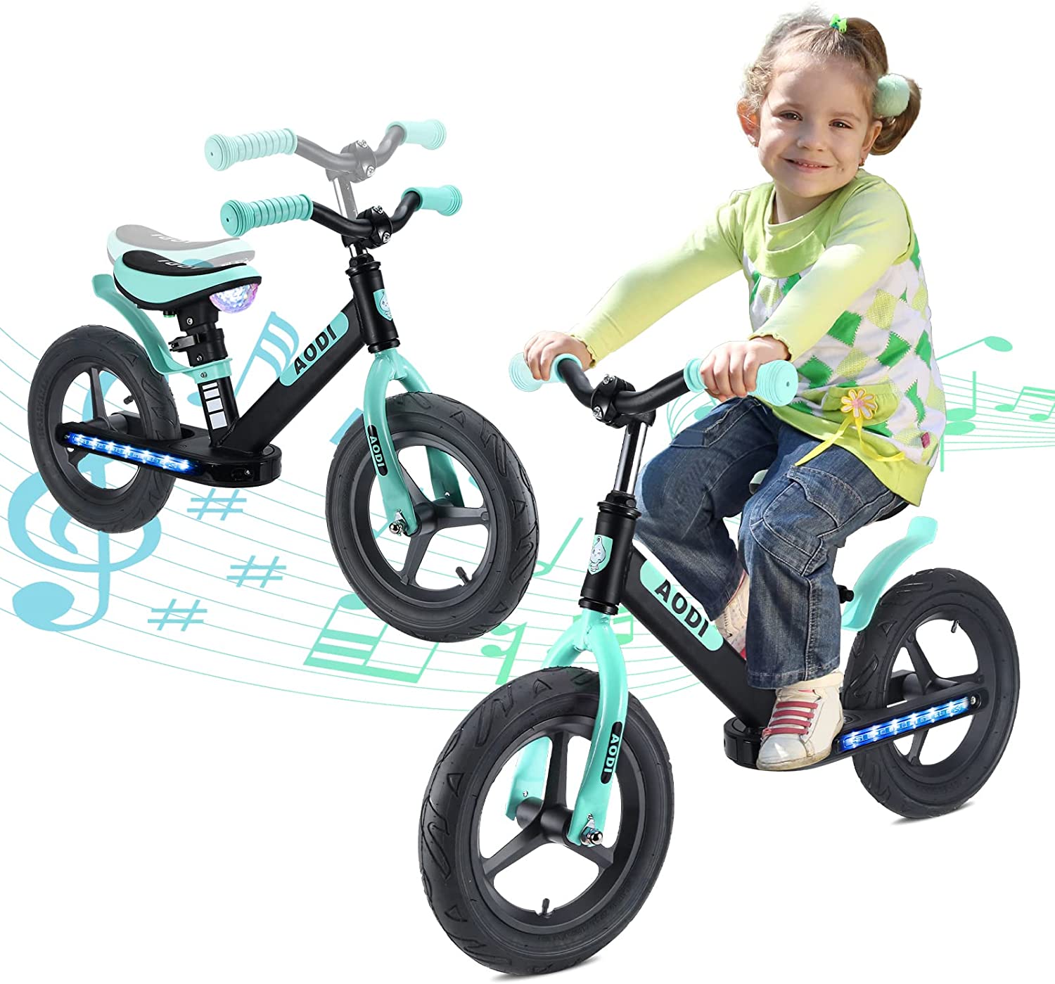Balance Bike for Kids, Toddler Training Bike with Bluetooth Music & LED | 12 Inch Wheels | Adjustable Handlebar & Seat | No Pedal Bike Best Gift for Girls Boys Ages 2 Years to 6 Years