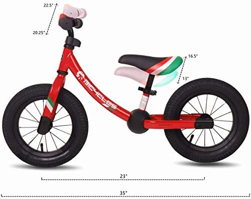 Balance Bike with Air Tires, Kids Bike Without Pedal, 12 inch Bike for Kids Ages 3-5 (Vibrant Red)