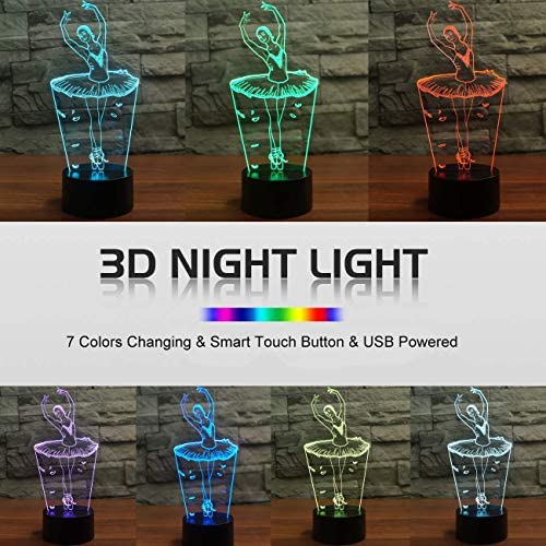 Ballet Dancer Gifts 3D Illuion Lamp YKLWORLD Ballerina Night Light 7 Color Changing Party Decor Birthday Gift Toys for Teen Girls