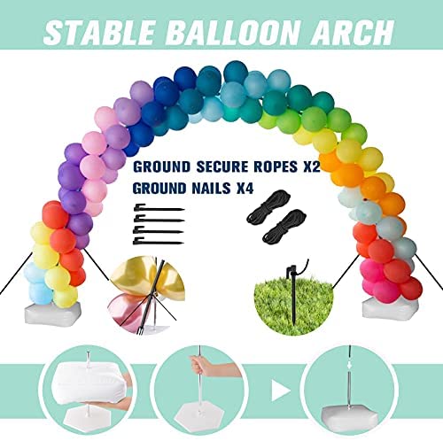 High-Quality Balloon ArchesThe balloon arch kit with base includes 15 folding fiberglass rods, 2 PVC bases, 2 steel pipes, 2 water (sand) filling bags, 1 hand pump, 50 balloon clips, and 2 balloon points Glue, 2 balloon knotters, 2 ground safety ropes, 4 ground nails. Stable & ReusableStable hexagonal base and water bag, stable steel pipe, 2 ground safety ropes and 4 ground nails. Will not shake violently due to wind or object collision. The high-strength black fiberglass rod is not easy to break when bent and can be reused anywhere. Suitable for ScenesThe balloon arch kit is suitable for birthday parties, family gatherings, Christmas and Halloween, and also suitable for catering displays, weddings and baby showers. Easy to AssembleThe height and width of the arch can be adjusted at will by adjusting the distance between the bases. It will not take more than 3 minutes to install this balloon arch. After-Sales Guarantee We provide high-quality balloon kit. If you have any questions or questions, please contact us first. If you are not satisfied, we will ensure you get the best solution or a full refund.