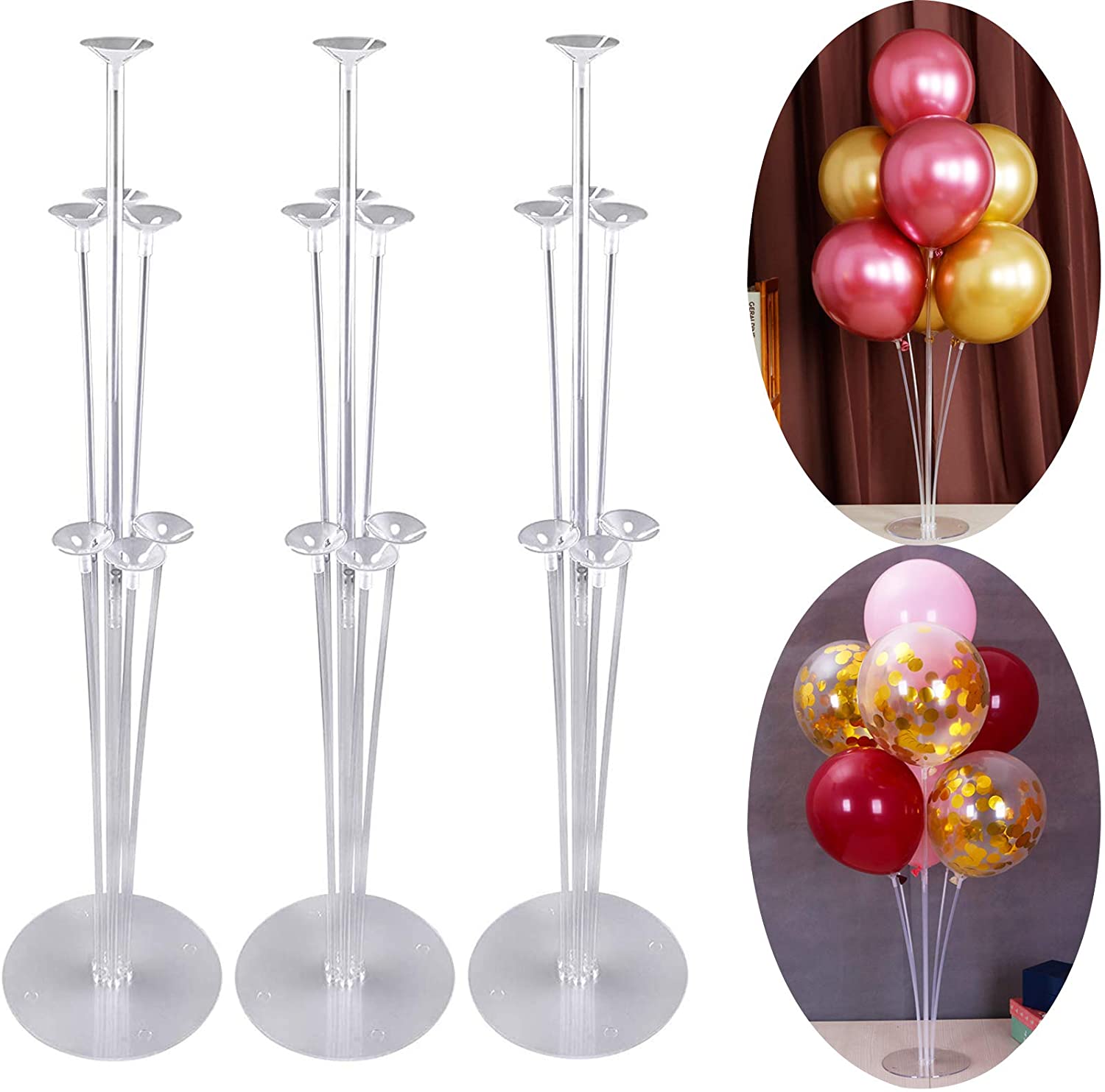The product including: 3 sets of balloon stand kits, 11 sticks, 7 cups 4 union joints and 1 base per kit. (not include balloon) Made of durable pla…