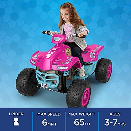 Barbie Pink Racing ATV, 12-V Battery Powered Ride-on Vehicle for Preschool Kids Ages 3-7 Years