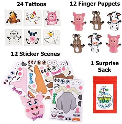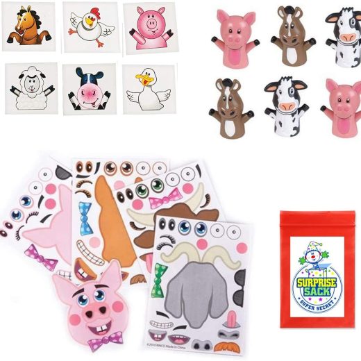 Barnyard Puppets, Tattoos, & Make-a-Farm Sticker Party Favor Pack