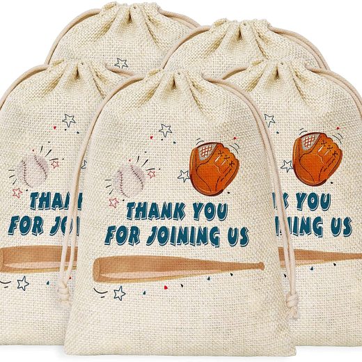 Baseball Party Bags, Baseball Theme Party Favors Bags for Kids Birthday, Baby Shower Party Supplies, Candy Goodies Treat Gift Bags with Drawstring, Set of 5(HB06)