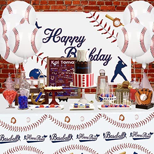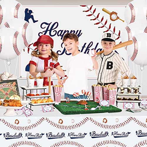 Baseball Table Covers – 86x 51 Home Run Printed Disposable Plastic Tablecloths for Baseball Themed Birthday Party Supplies Sports Event Game Day Decorations (F)