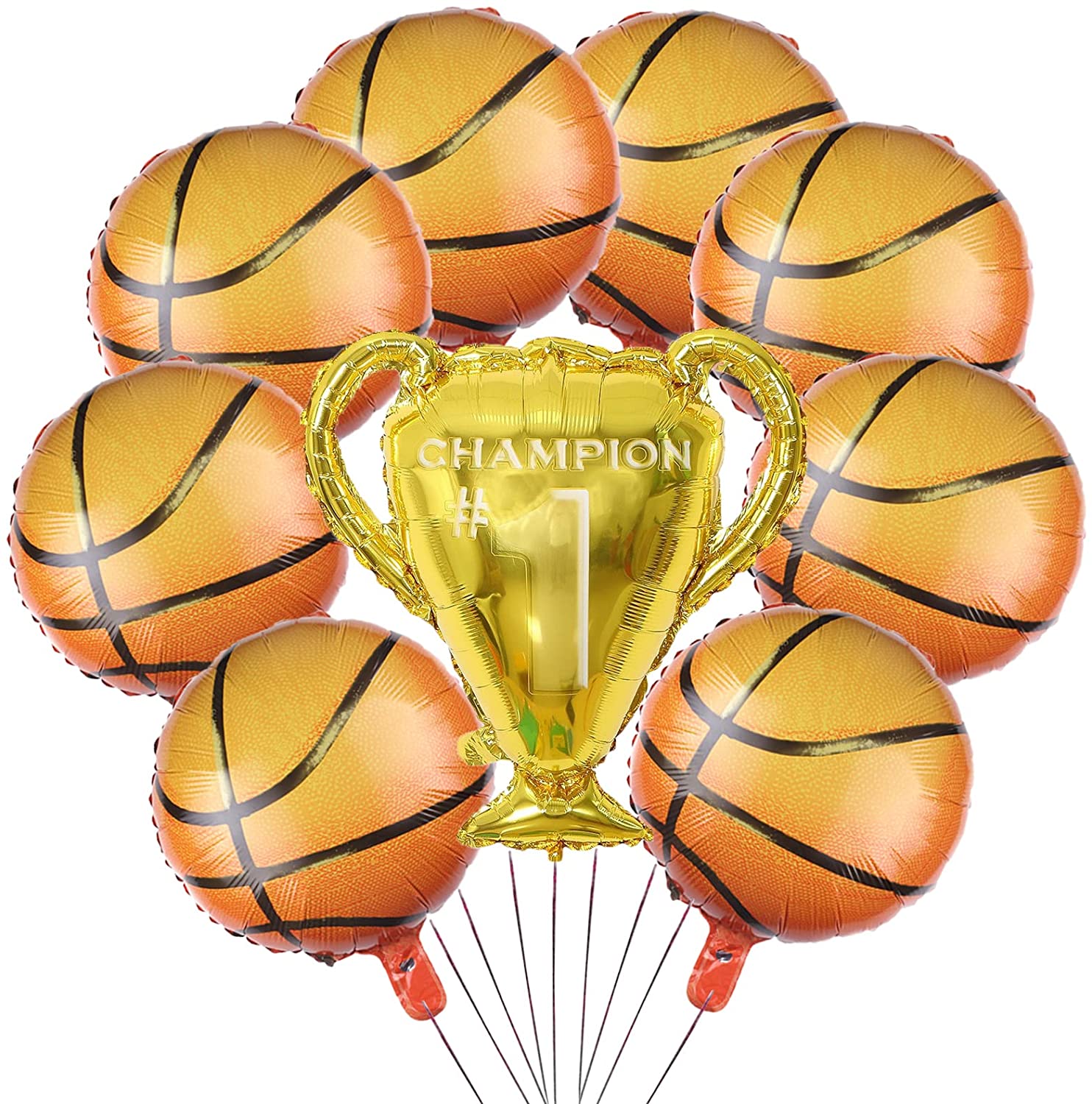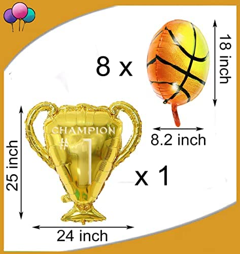 Basketball Balloons, Basketball Party Supplies, Large Champion Balloon, 18 Inch Aluminum Foil Balloon for Birthday Sports Theme Party Decoration (9Pcs)