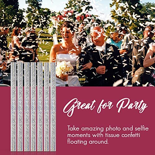 ROMANTIC AND SPECIAL – Our white paper confetti wands can simply make your day romantic and special.Just swing your arm, flick your wrist and create a magical display at your events. MATERIAL – Our party confetti is made of tissue paper which is ECO friendly. EASY TO USE & SAFE – Just open the cap, swing your arm and flick the sticks, the paper confetti flick will flutter in the air, can be used indoor or outdoor party. Its great for party decoration, take gorgeous photos, surprise you friends. PERFECT FOR CELEBRATIONS – Immerse yourself and your guests in white confetti; make amazing photo and selfie moments with colorful confetti floating around; surprise your family and friends on their wedding,birthday, graduation party, championship games, award ceremony and more. SIZE – There are 14packs in total, invite your friends or your kids to play together.