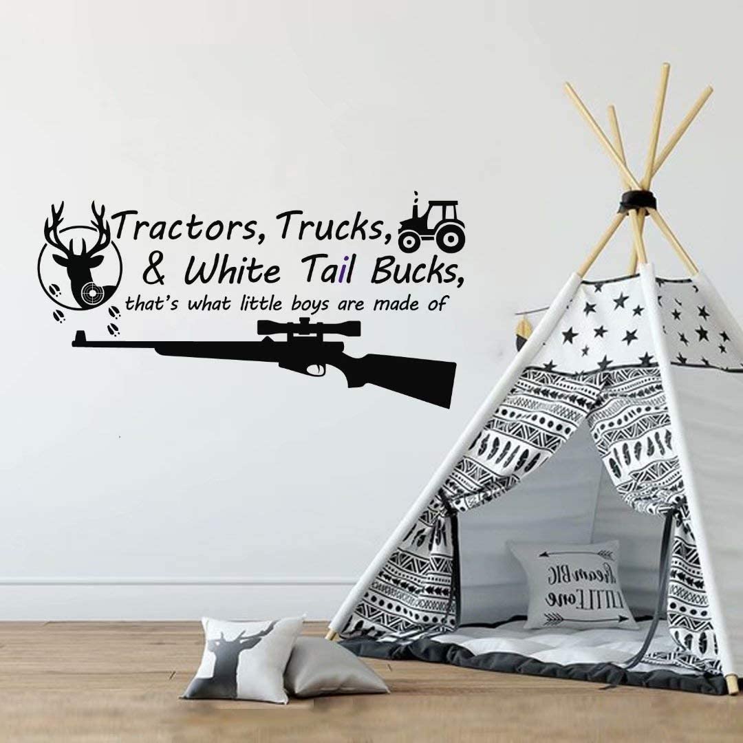 BATTOO Tractors, Trucks White Tail Bucks – Little Boys are Made of – Deer Tracks Boys Hunting Wall Decals Children Wall Decal Vinyl Art – Nursery Wall Vinyl Decal Vinyl(Black, 22