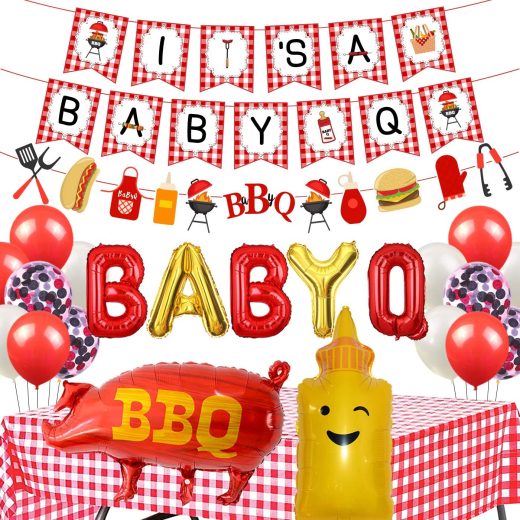 Baby Q Shower Decorations: Valuable package includes 1 IT’S A BABY Q banner, 1 BBQ themed garland, 1 set of BABY Q foil balloon, 1 BBQ pig foil bal…