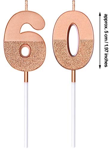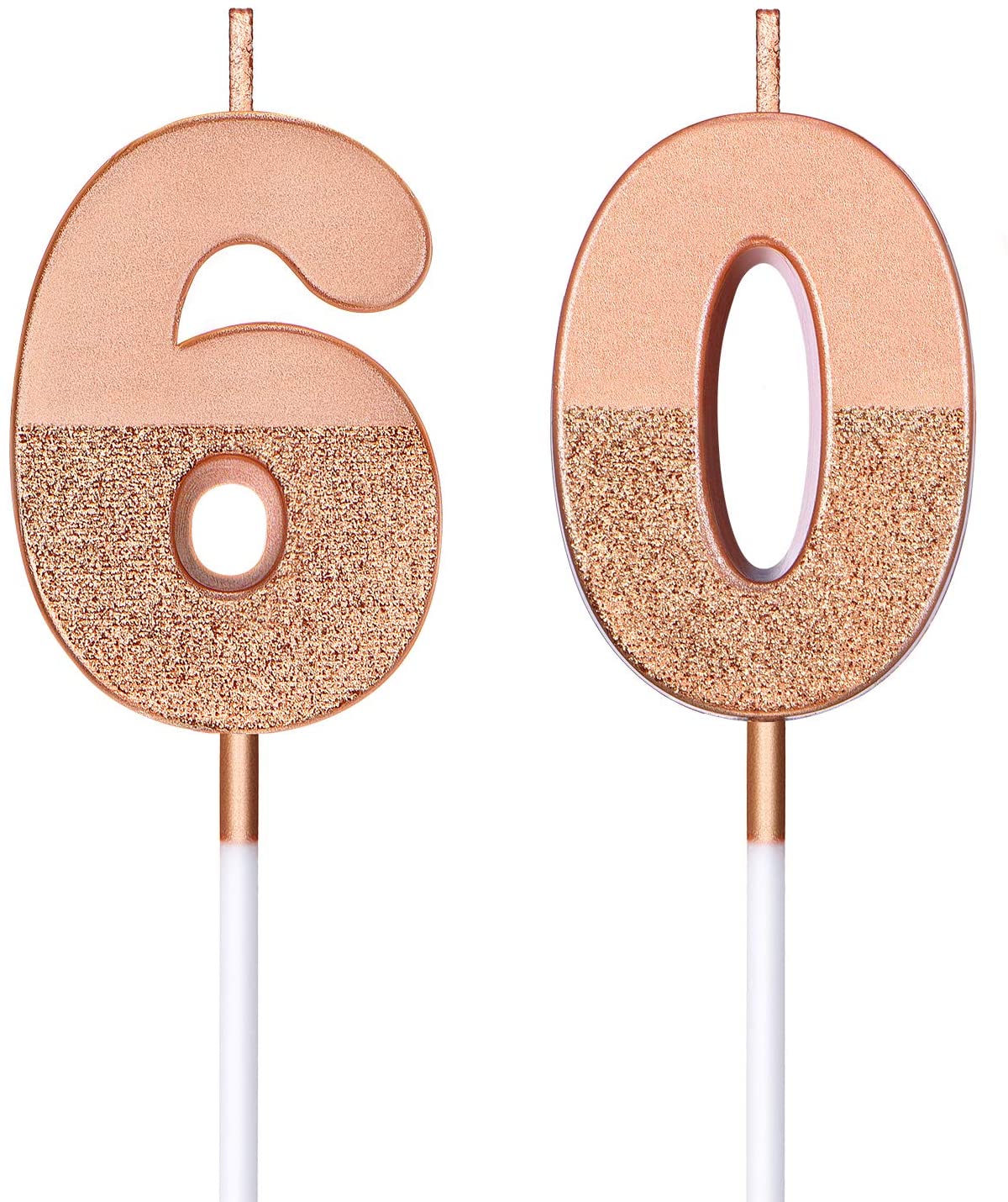 BBTO 60th Birthday Candles Glitter Cake Numeral Candles 60th Birthday Cake Topper Decoration for Birthday Wedding Anniversary Celebration Favor, Rose Gold