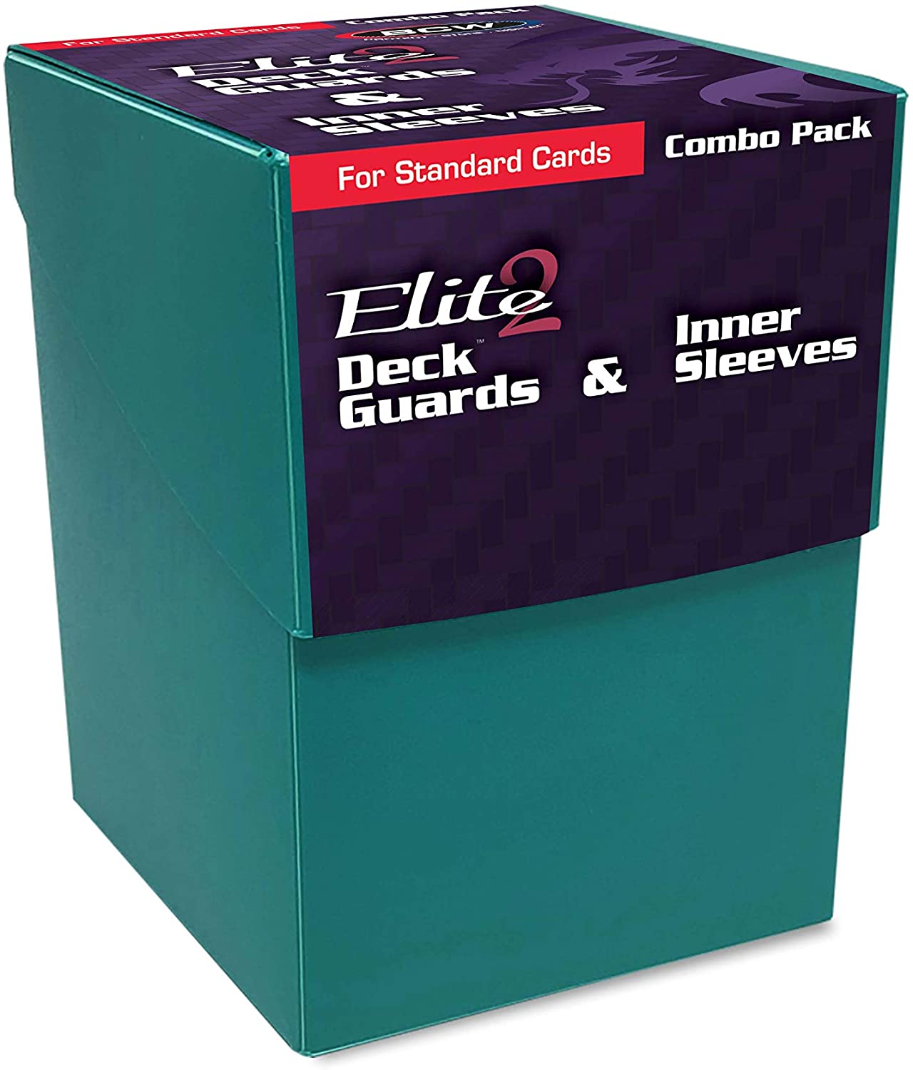 BCW has combined some popular sleeves to make a great value for gamers that double-sleeve their cards. These Combo Packs packs include 100 Elite2 Deck Guards and 100 inner sleeves, packaged in a plastic deck case with a card divider. Elite2 Deck Guards are BCWs premium game card sleeves, and the ones used in the Combo Packs are for standard-size cards. They have a gloss finish on the clear layer to maintain the shine of foil cards. Elite2 Deck Guards have a blackout layer to ensure the sleeves are opaque.