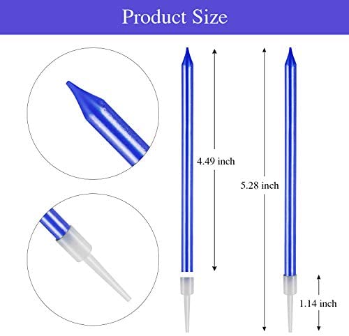 ?QUALITY MATERIAL? Quality material: exquisite Long Thin Cupcake Candle made of high quality wax, smokeless, non-toxic, tasteless, harmless and safe to use. ?EXCELLENT PERFORMANCE?The birthday cake candle burns well, the flame is stable and burns slowly, making the cake look more special and beautiful, you can feel the romantic and warm atmosphere under the candlelight ?VARIABLE SIZE?The cake candle is 5.4 inches long with a 1.2-inch movable stand; you can use scissors to change the length of the candle to the desired length to create the desired shape. ?WIDE RANGE OF APPLICATIONS?Beautifully decorated for cakes or cupcakes, suitable for weddings, birthdays, baby showers, bridal showers or festivals, and any other important occasion. ?GOOD CUSTOMER SERVICE?If the candle is damaged during transportation, please feel free to contact us and we will replace it with a new candle or refund your purchase price.
