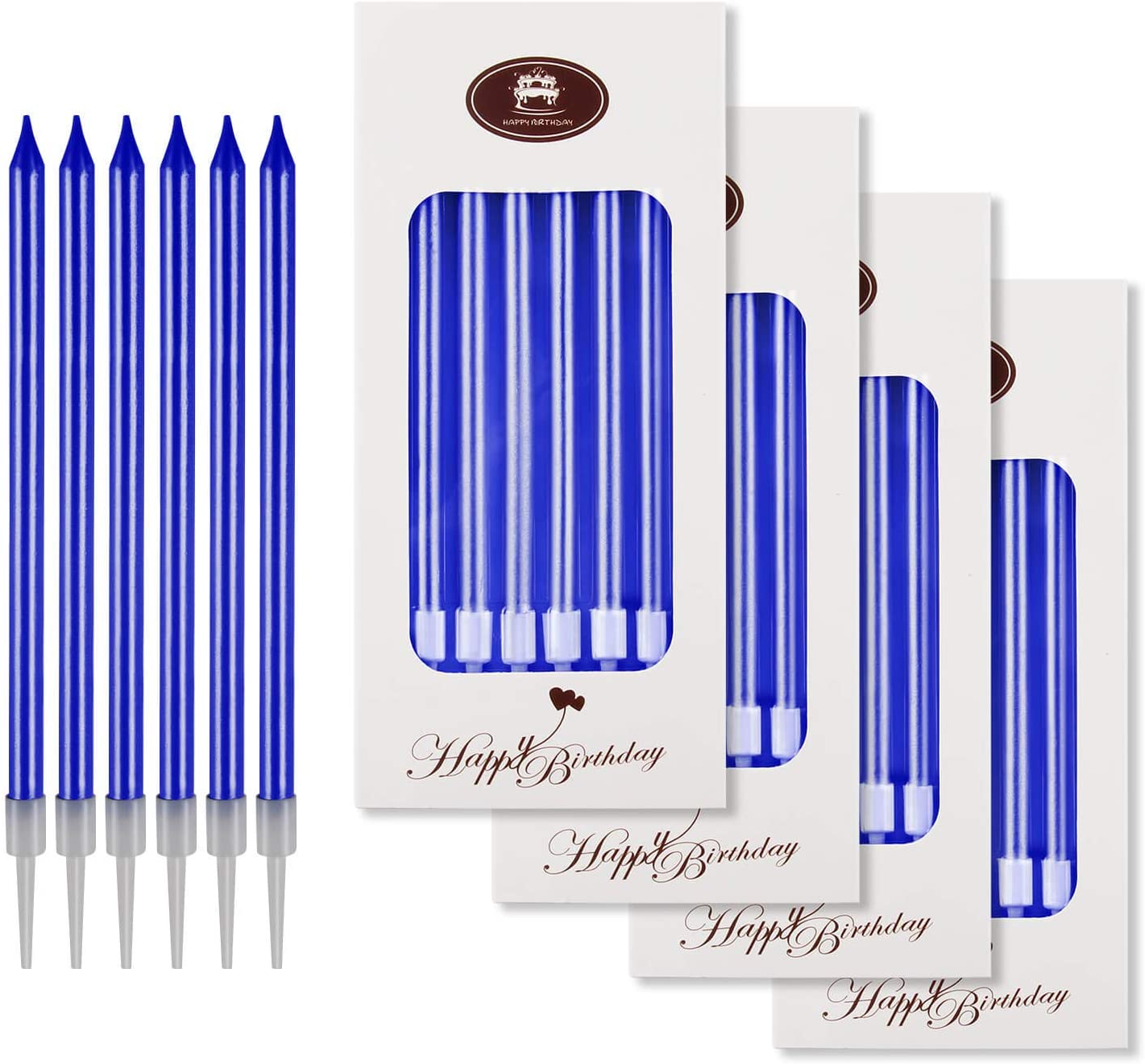 Beanlieve 24 Count Birthday Candles – Long Thin Cake Candles Slow Burning Candles for Birthday, Wedding, Lucky Party Decoration (Blue)