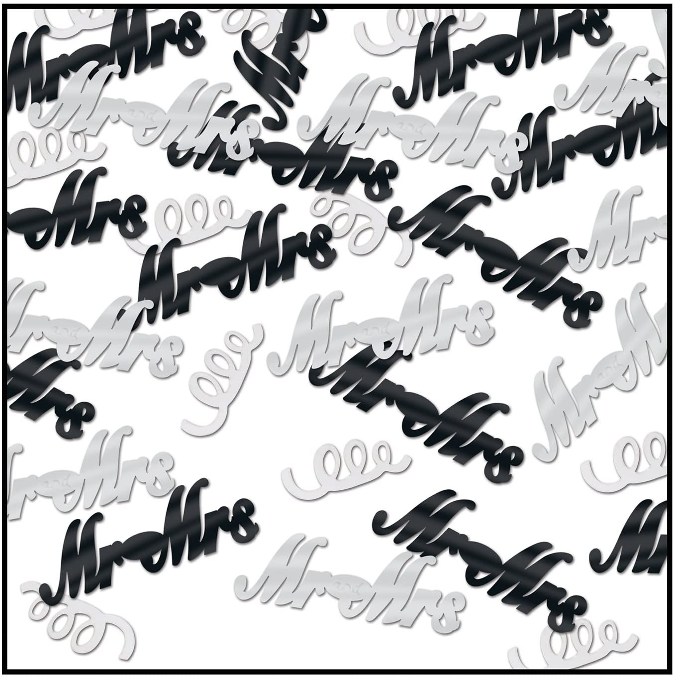 Beistle 0.5 Ounces Metallic Plastic Mrs Confetti for Wedding Receptions and Bridal Shower Engagement Party Celebrations, 0.5 oz, Black/Silver