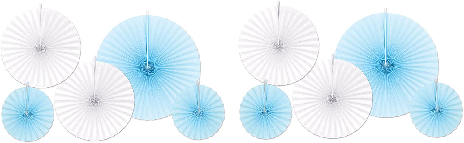 Beistle 10 Piece Accordion Paper Fans, Assorted Sizes, Light Blue/White
