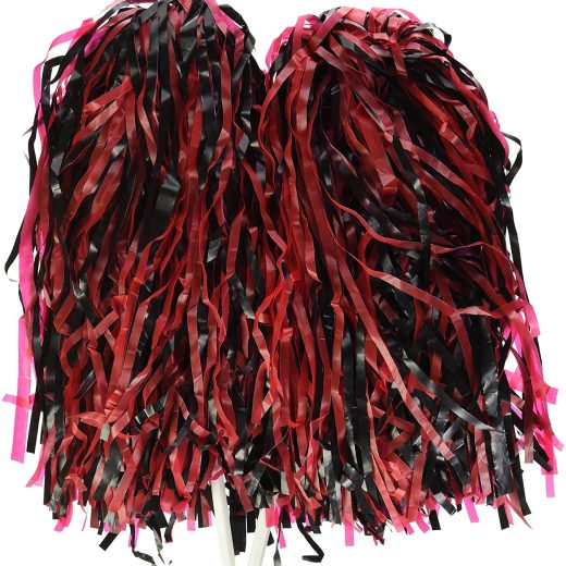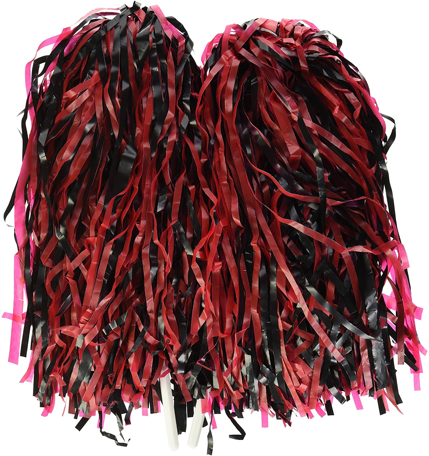 Beistle 2 Piece Red And Black Plastic Party Shakers Cheerleader PomPoms For Dance Sports Football Games Or Pep Rally School Spirit Accessories, 12