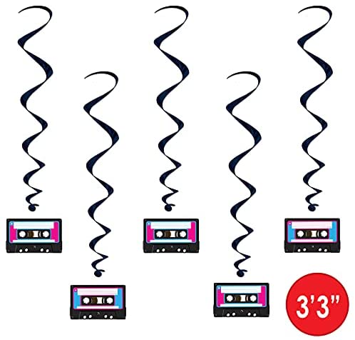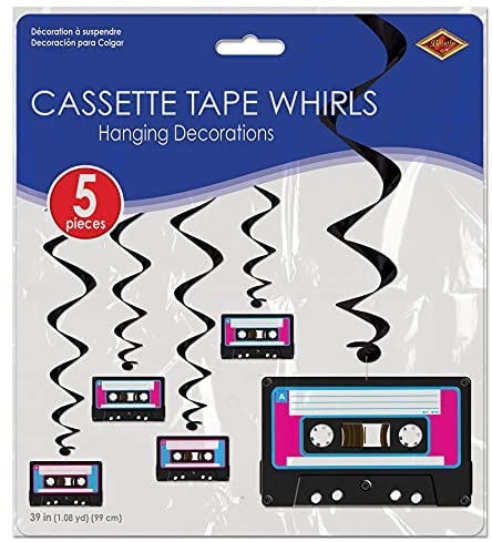 Beistle Casette Tape Hanging Swirls (5 Pcs) -1 Pack, 3.3-Inch, Multicolor