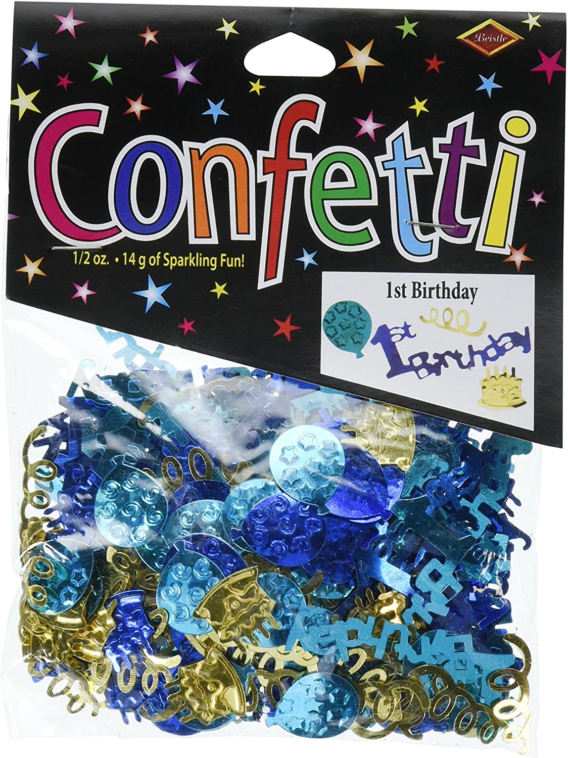 Beistle CN059 Blue 1st Birthday Cutout Plastic Confetti-1 Pack / .5oz, Multicolored