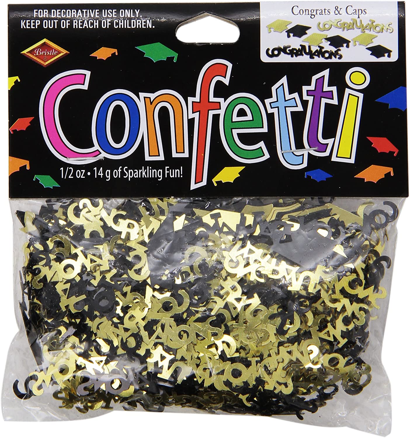 Beistle Congrats and Caps Confetti, 0.5 ounces, Black/Gold
