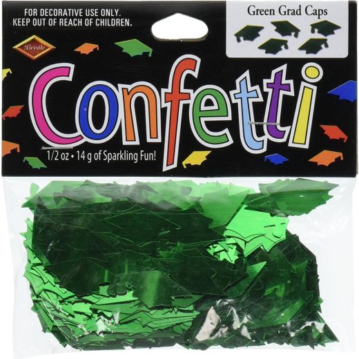 Beistle Grad Caps Mortarboard Cutout Plastic Confetti, 1 Pack, Green
