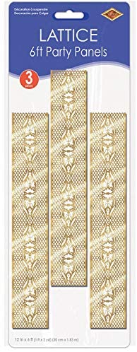 Beistle 53575 lattice party panels. The package contains 3 party panels. They are printed on clear thin plastic with a lattice design. Each panel measures 12 inches wide by 6 feet long. Hang them up for an Arabian nights themed party!