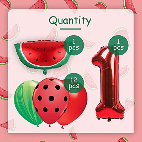 Package: Comes with 14 pieces watermelon balloons 1st birthday in total, includes 12 pieces of latex balloons in 3 different colors, 1 piece of wat…