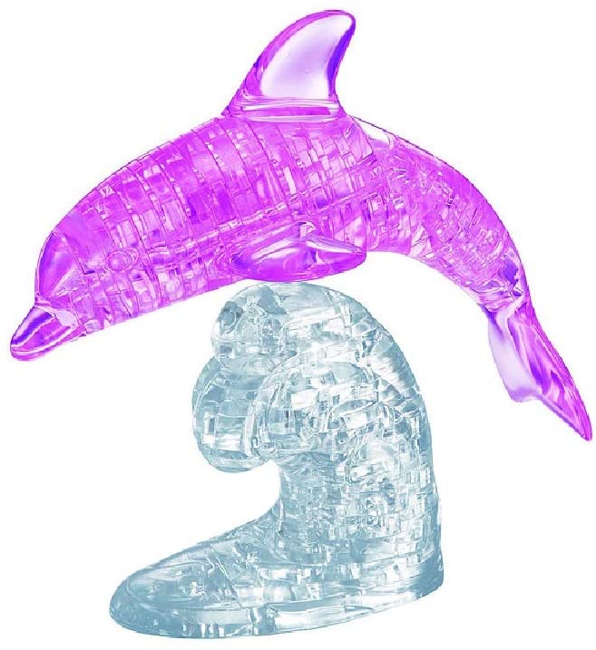 BePuzzled Deluxe 3D Crystal Jigsaw Puzzle – Dolphin Animal Assembly Brain Teaser, Fun Model Toy Gift Decoration for Adults & Kids Age 12 and Up, Pink, 95 Pieces (Level 3)