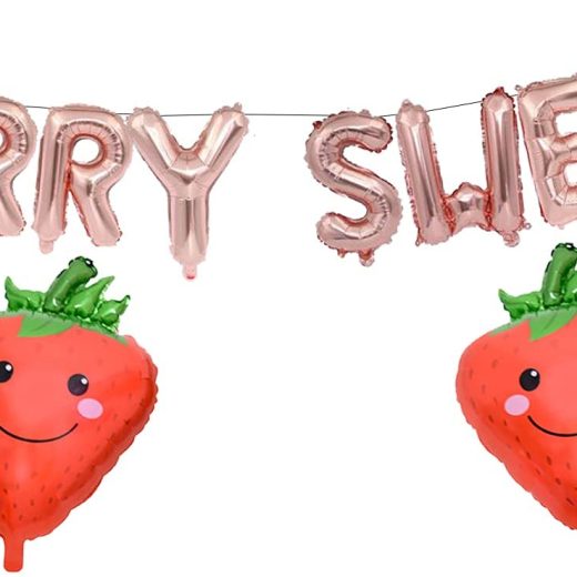 Berry Sweet Balloon, Sweet Berry Themed 1st 2nd Birthday Party Supplies, Rose Gold Strawberry Banner for Strawberry Baby Shower, Strawberry Birthday Decorations (16 inch)