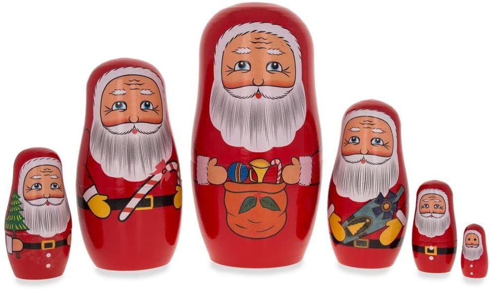 BestPysanky Set of 6 Santa Wooden Nesting Dolls 5.5 Inches
