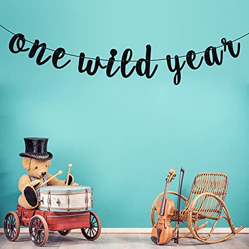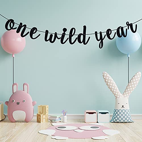 Betalala One Wild Years Banner, Sweet One, Baby 1st Birthday Decorations, Little BoysGirls 1st Birthday Party Decorations Black Glitter