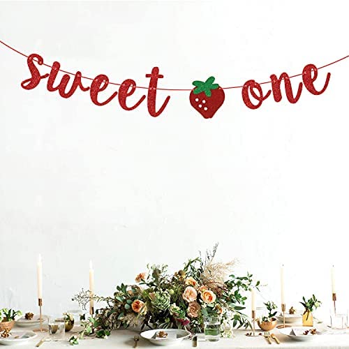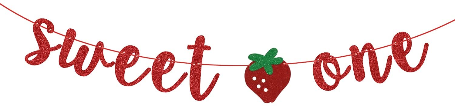 Betalala Strawberry Sweet One Banner, Baby 1st Birthday Banner, Strawberry Themed 1st Birthday Baby Shower Party Decorations Red Glitter