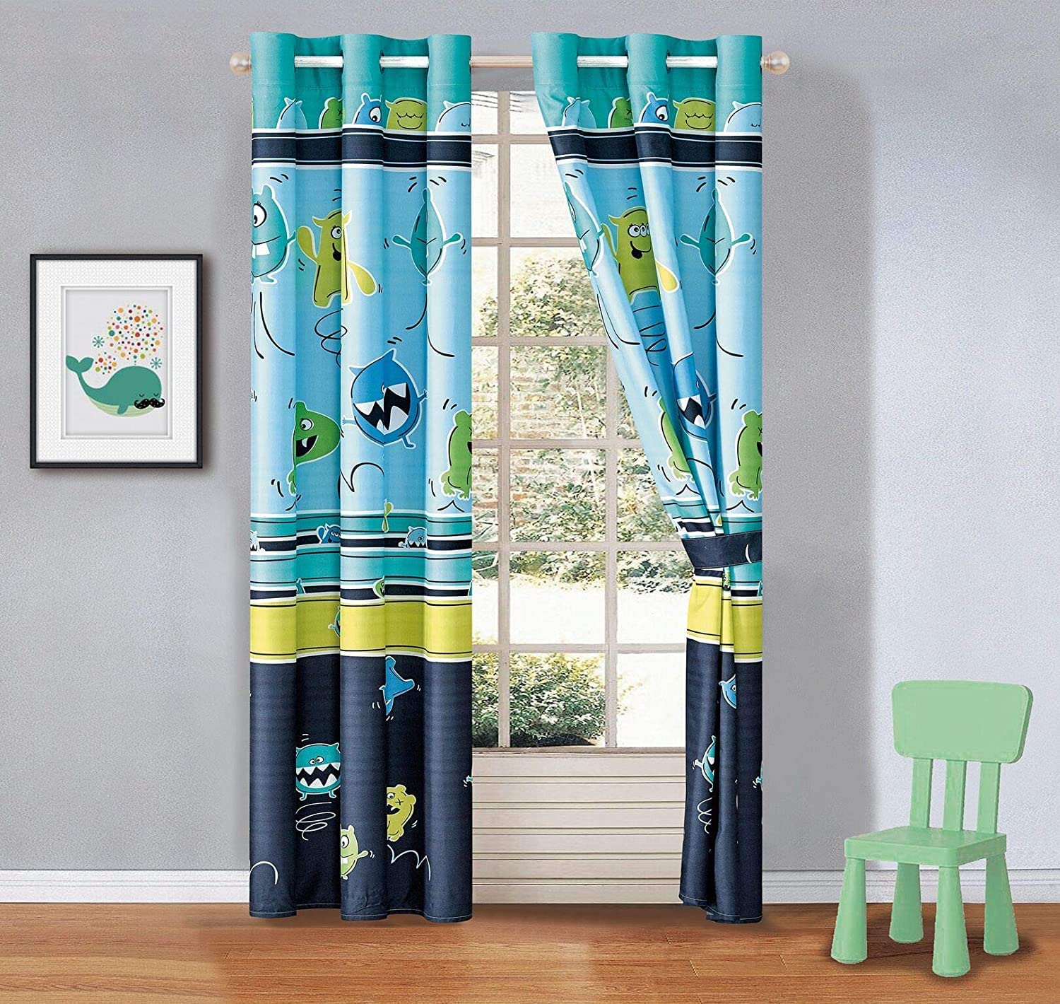 Better Home Style Printed Fun Multicolors Kids Room Window Curtain Treatment Drapes 2 Piece Set with Grommets (Monsters)