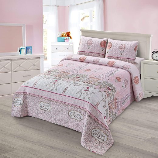 Be the first to review “Better Home Style White Pink Paris Eiffel Tower with Trees Balloons Street Lights Dogs Design Bonjour Kids/ Girls /Toddler Coverlet Bedspread Quilt Set with Shams # LaLa (Queen / Full)” Cancel reply