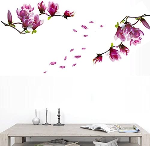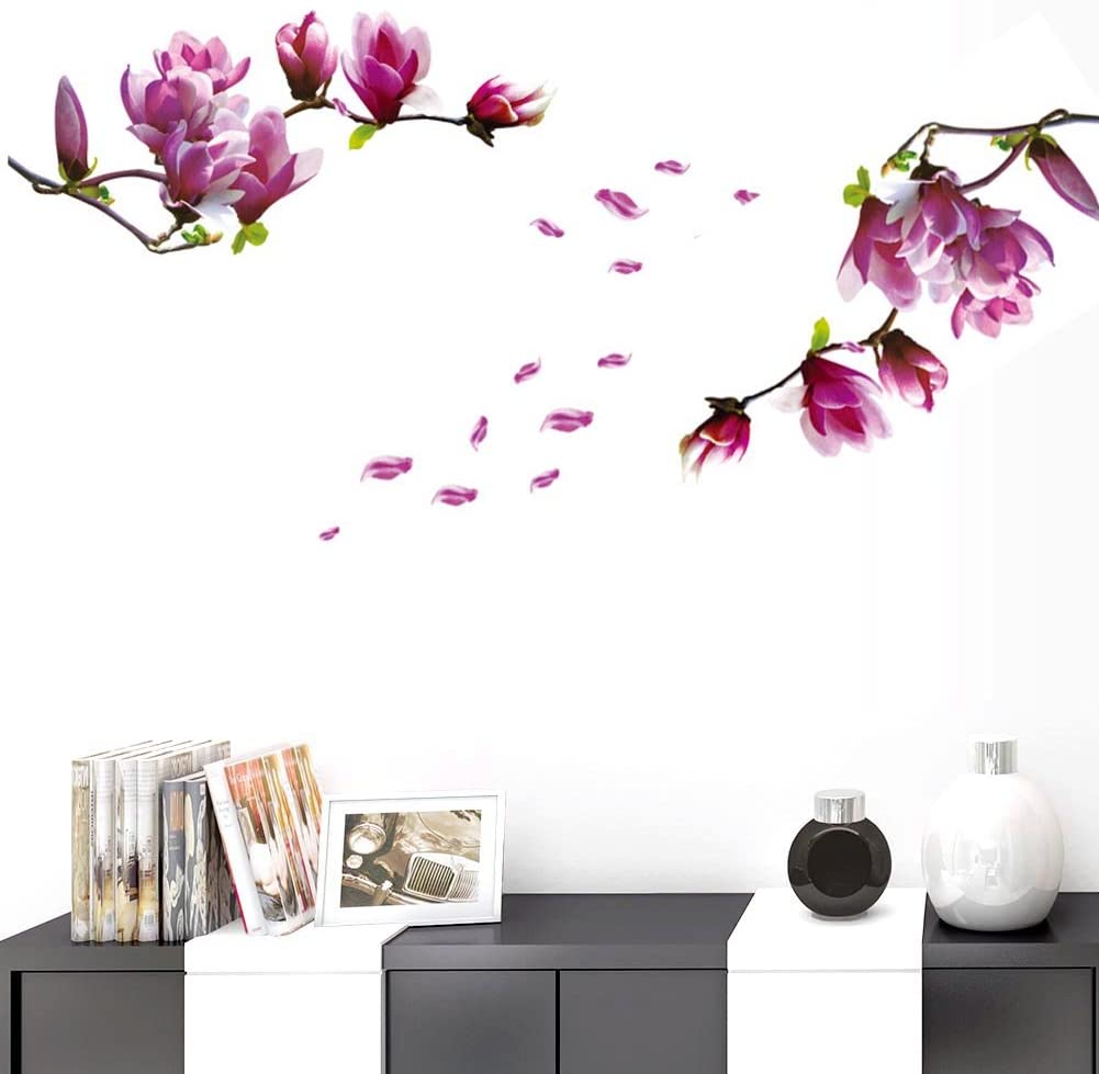 BIBITIME 2 Sheets Purple Magnolia Vinyl Sticker Flower Wall Decal Tree Branches Bud Petal PVC Home Decor Art Murals for Living Room Couple Bedroom Nursery Children Kids Room Decor