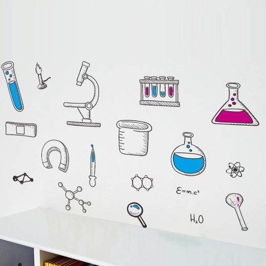 BIBITIME Science Laboratory Wall Decals Vinyl Chemical Element Tool Stickers for School Classroom Nursery Bedroom Children Student Study Teens Kids Room Decor DIY Home Art Decorations