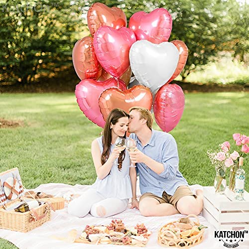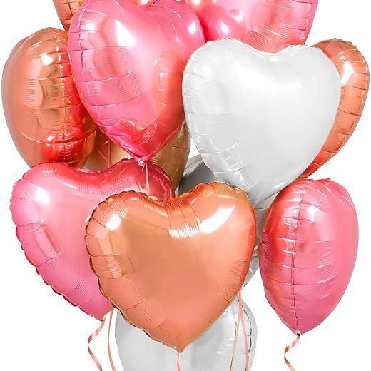 Big 12 Pieces Rose Gold Heart Balloons – 18 Inch | Mylar Pink Heart Balloons | Valentines Day Decor | Rose Gold Metallic Valentine Balloons, White Heart Balloons | Valentines Day Party Decorations