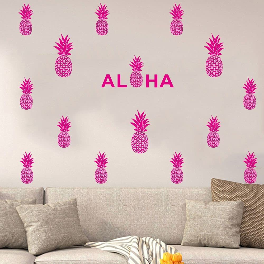 Big 15 pcs /Set Pineapple Wall Stickers Hawaiian Aloha Sticker for Kids Bedroom ,Nursery Room Vinyl Decoration Wall Decal JWH125 (Blush Pink)