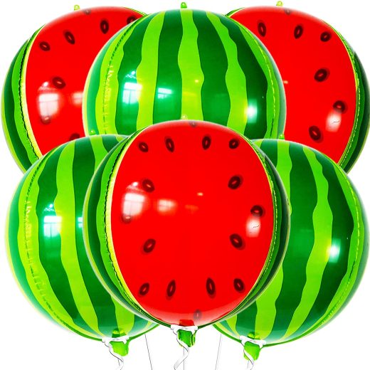 Big, 22 Inch Watermelon Balloons – Pack Of 6 | Fruit Balloons | 360 Degree 4D Watermelon Party Decorations | Watermelon Foil Balloons for One In A Melon Party Decorations, Watermelon Party Supplies