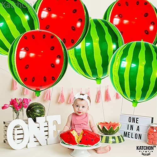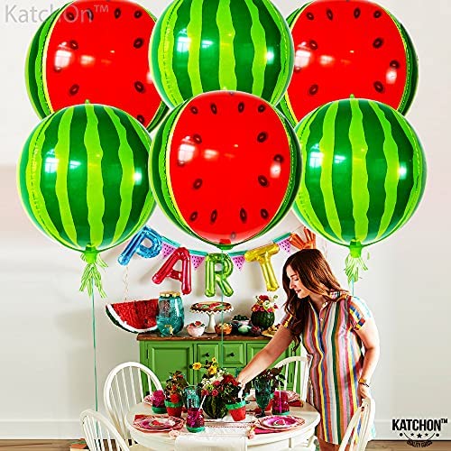 Big 22 Inch Watermelon Balloons – Pack of 6, One In A Melon Party Decorations | 360 Degree 4D Sphere Watermelon Party Supplies | Fruit Balloons Watermelon Decorations | Watermelon Birthday Decorations