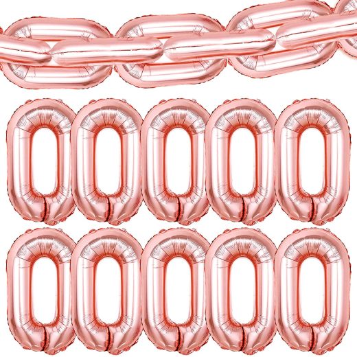 Big, 30 Pieces Rose Gold Chain Balloons – 90s Party Decorations | Chain Balloons for Hip Hop Party Decorations | Rose Gold Chain Balloons Garland for Retro Decoration, Rose Gold Party Decorations