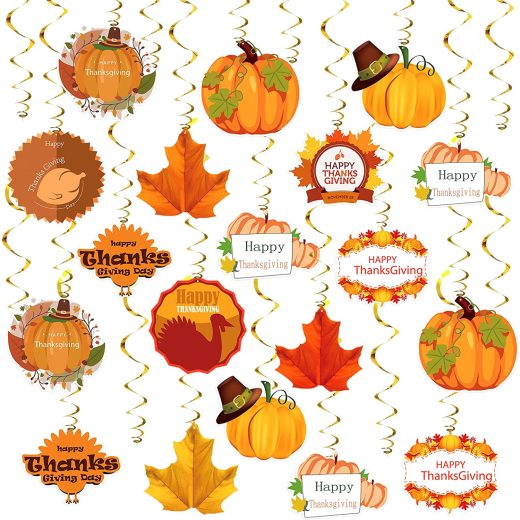 Big 30 Pieces Thanksgiving Hanging Swirls – No DIY | Fall Classroom Decorations | Thanksgiving Hanging Decorations | Autumn Ceiling Decorations | Fall Hanging Decorations | Thanksgiving Decorations