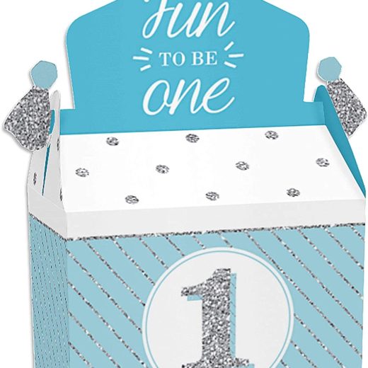 Big Dot of Happiness 1st Birthday Boy – Fun to be One – Treat Box Party Favors – First Birthday Party Goodie Gable Boxes – Set of 12