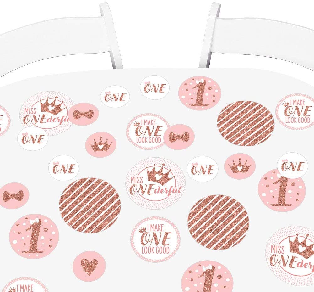 1st Birthday Little Miss Onederful Giant Circle Confetti INCLUDES 27 large girl first birthday party confetti. 1st Birthday Little Miss Onederful decorations are perfect for a first party. 1st Birthday Little Miss Onederful giant circle confetti SIZE 5.5 inches large circles, six qty; 4.25 inches medium circles, nine qty; and 2.75 inches small circles, twelve qty. The unique design and large size makes these rose gold party decorations an impressive addition to any party. EASY TABLE DECOR: Adult 30th Birthday giant circle confetti comes in a variety of coordinating patterns in three different sizes. Scatter them down the length of your party tables, add them to centerpieces or hole-punch them and string together as a birthday party banner. 1st paper confetti pieces will make a statement however you choose to use them. PREMIUM PARTY SUPPLIES: 1st Birthday Little Miss Onederful giant circle confetti are professionally printed on heavy-duty cardstock paper with a photo-like shine. They are individually inspected and carefully packaged by hand. Giant table confetti will arrive flat. Get creative with your DIY party ideas! MADE IN THE USA: 1st Birthday Little Miss Onederful – Party Giant Circle Confetti is designed and manufactured at our Wisconsin facility using materials that are Made in America. 1st Birthday Little Miss Onederful Table Confetti use a No-Mess Glitter Print: Our confetti are designed with a printed image of glitter, eliminating glitter flake while maximizing bling effect!