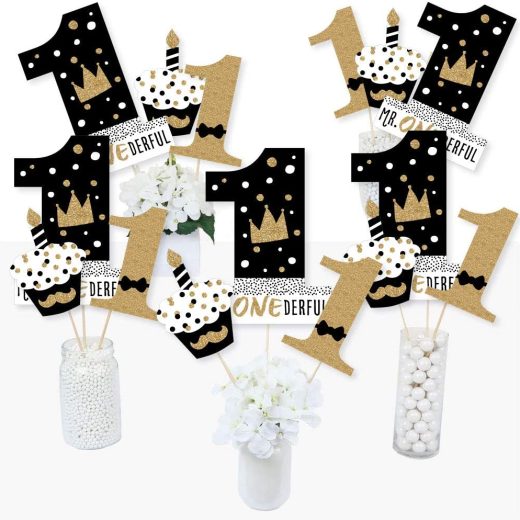Big Dot of Happiness 1st Birthday Little Mr. Onederful – Boy First Birthday Party Centerpiece Sticks – Table Toppers – Set of 15
