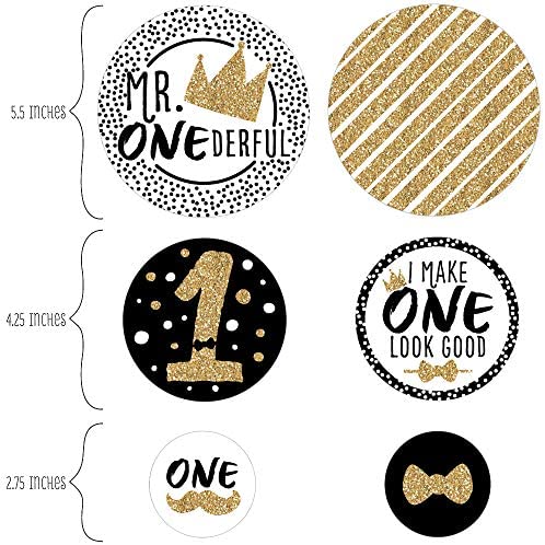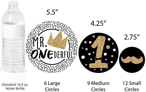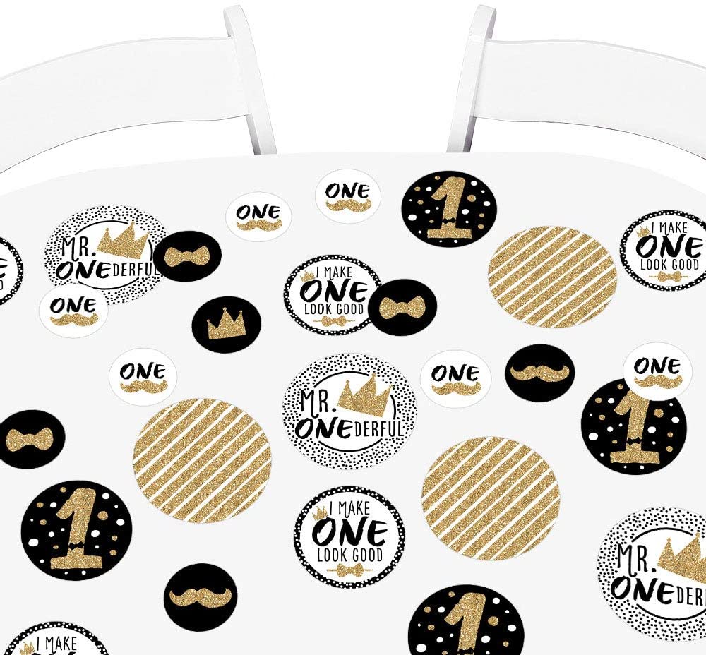 1st Birthday Little Mr. Onederful Giant Circle Confetti INCLUDES 27 large boy first birthday party confetti. 1st Birthday Little Mr. Onederful decorations are perfect for a first party. 1st Birthday Little Mr. Onederful giant circle confetti SIZE 5.5 inches large circles, six qty; 4.25 inches medium circles, nine qty; and 2.75 inches small circles, twelve qty. The unique design and large size makes these black and gold party decorations an impressive addition to any party. EASY TABLE DECOR: Adult 30th Birthday giant circle confetti comes in a variety of coordinating patterns in three different sizes. Scatter them down the length of your party tables, add them to centerpieces or hole-punch them and string together as a birthday party banner. 1st paper confetti pieces will make a statement however you choose to use them. PREMIUM PARTY SUPPLIES: 1st Birthday Little Mr. Onederful giant circle confetti are professionally printed on heavy-duty cardstock paper with a photo-like shine. They are individually inspected and carefully packaged by hand. Giant table confetti will arrive flat. Get creative with your DIY party ideas! MADE IN THE USA: 1st Birthday Little Mr. Onederful – Party Giant Circle Confetti is designed and manufactured at our Wisconsin facility using materials that are Made in America. 1st Birthday Little Mr. Onederful Table Confetti use a No-Mess Glitter Print: Our confetti are designed with a printed image of glitter, eliminating glitter flake while maximizing bling effect!