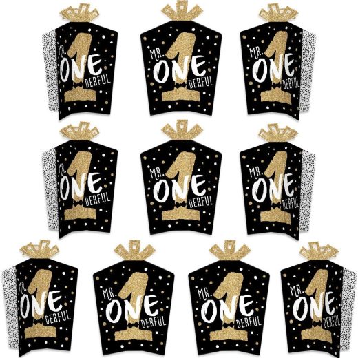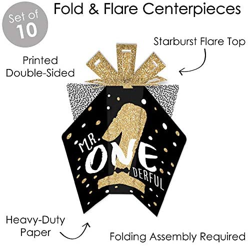 Big Dot of Happiness 1st Birthday Little Mr. Onederful – Table Decorations – Boy First Birthday Party Fold and Flare Centerpieces – 10 Count