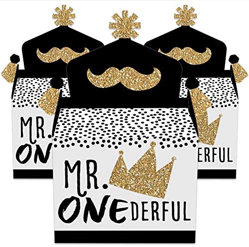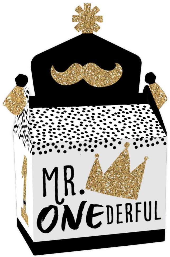 Big Dot of Happiness 1st Birthday Little Mr. Onederful – Treat Box Party Favors – Boy First Birthday Party Goodie Gable Boxes – Set of 12