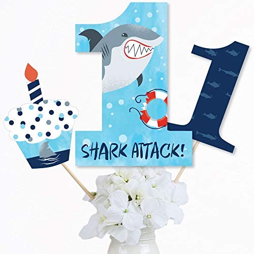Big Dot of Happiness 1st Birthday Shark Zone – Jawsome Shark First Birthday Party Centerpiece Sticks – Table Toppers – Set of 15