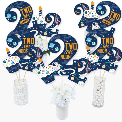 Big Dot of Happiness 2nd Birthday Two The Moon – Outer Space Second Birthday Party Centerpiece Sticks – Table Toppers – Set of 15