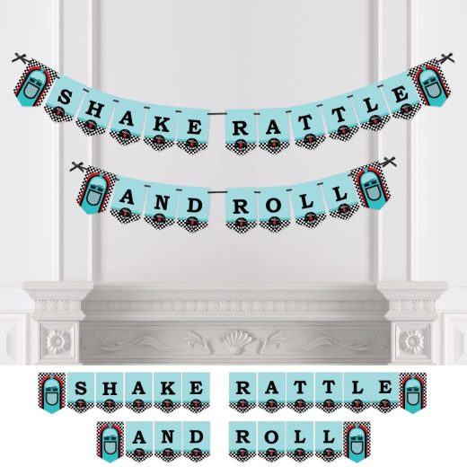 Big Dot of Happiness 50s Sock Hop – 1950s Party Bunting Banner – Rock N Roll Party Decorations – Shake Rattle and Roll